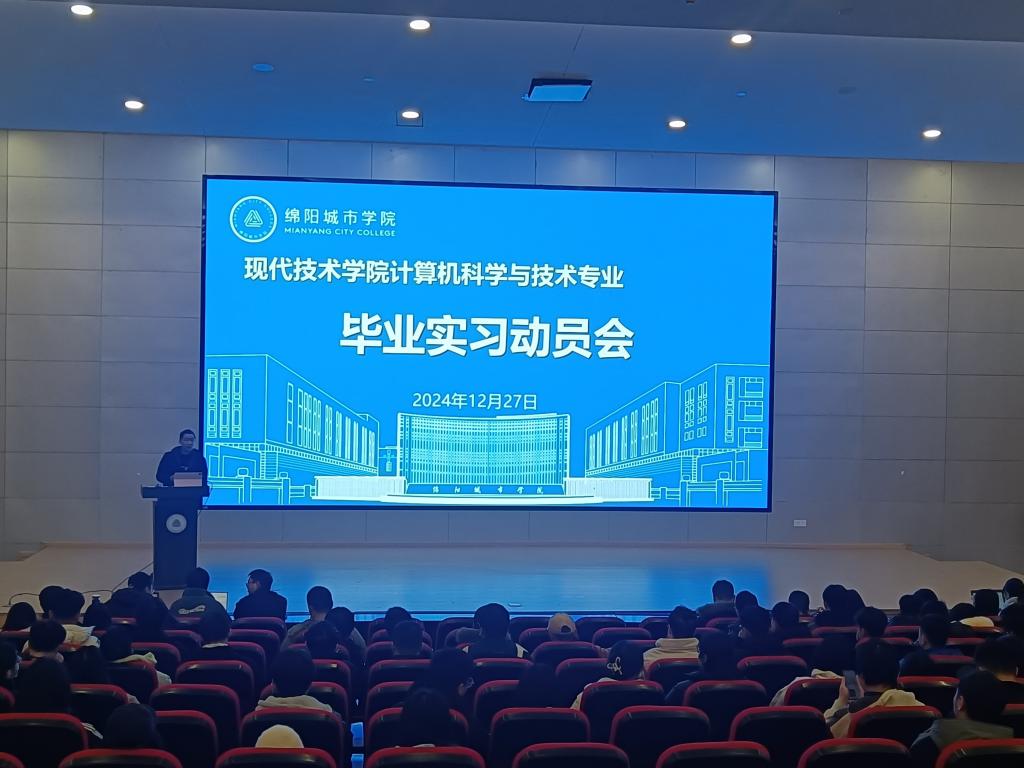 2024年12月27日上午,mk体育主办的计算机科学与技术专业毕业实习动员会于安州校区博润楼附105报告厅顺利召开。毕业实习动员会旨在向员工传达实习相关信息、强调实习意义、明确实习要求与流程,以提升员工重视程度,增强其责任与安全意识,助力员工顺利完成实习,实现从校园到职场的平稳过渡。出席本次会议的人员有计算机科学与技术教研室主任邓强、副主任邓抒江、教研室全体教师以及员工代表。
