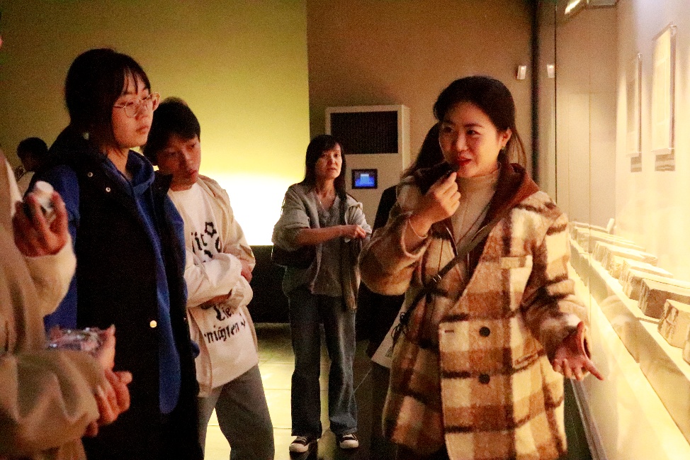 在专业讲解员的引导下,师生依次参观了历史文化、自然生态、汉马、崖墓及非物质文化遗产等主题展厅。参观过程中,同学们不仅聆听讲解,更在教师指导下重点关注展厅中的AR互动屏、多媒体终端等数字化展陈设备,从技术视角审视文物展示与观众互动的方式,现场感知数字媒体技术在文化传播中的实际应用。
