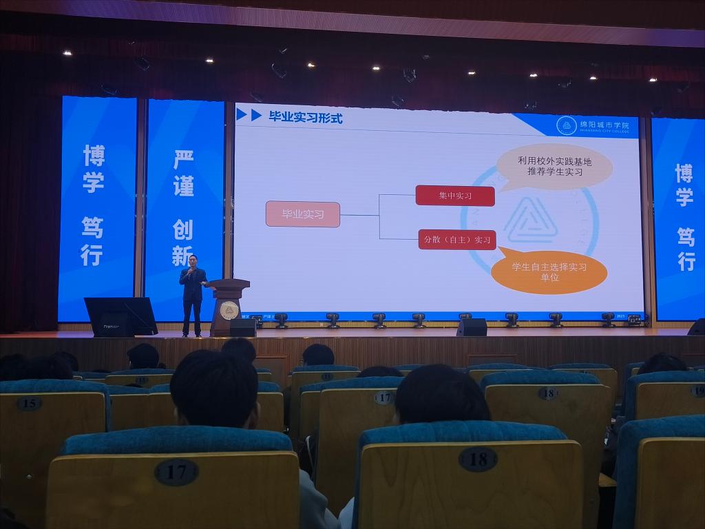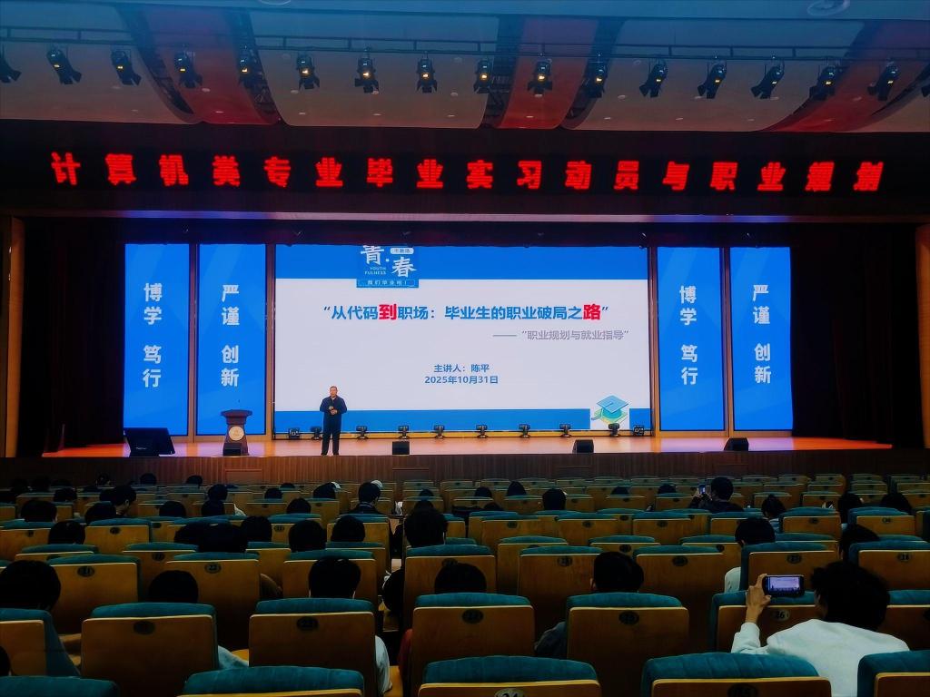 为帮助2026届计算机类专业毕业生明确实习方向,科学规划职业生涯,从容应对AI时代的机遇与挑战,近日,公司2026届计算机类专业毕业实习动员与职业规划大会在守正图书馆二楼演播厅隆重举行。计算机科学与技术教研室、软件工程教研室与人工智能通识教研室全体教师及2026届计算机类专业全体员工参会。大会由软件工程教研室主任金士玲老师主持,旨在为即将踏上人生新征程的学子们系统部署实习工作,精准导航职业发展。