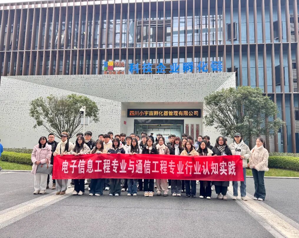 为深化专业认知、把握产业前沿,11月21日,电子信息工程专业组织2025级全体新生前往四川小宇宙孵化管理有限公司与四川翰瑞威数字技术有限公司开展行业认知实践活动。本次活动紧扣“新一代通信技术”与“智能检测及控制”两大专业方向,通过实地参观、技术讲解与员工交流,搭建起从课堂走向产业的第一座桥梁。